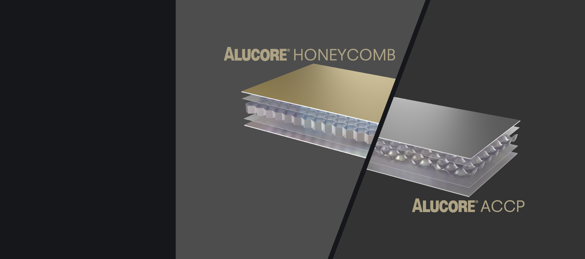 ALUCORE® is an aluminium composite panel consisting of two cover sheets and a honeycomb core of aluminium.
